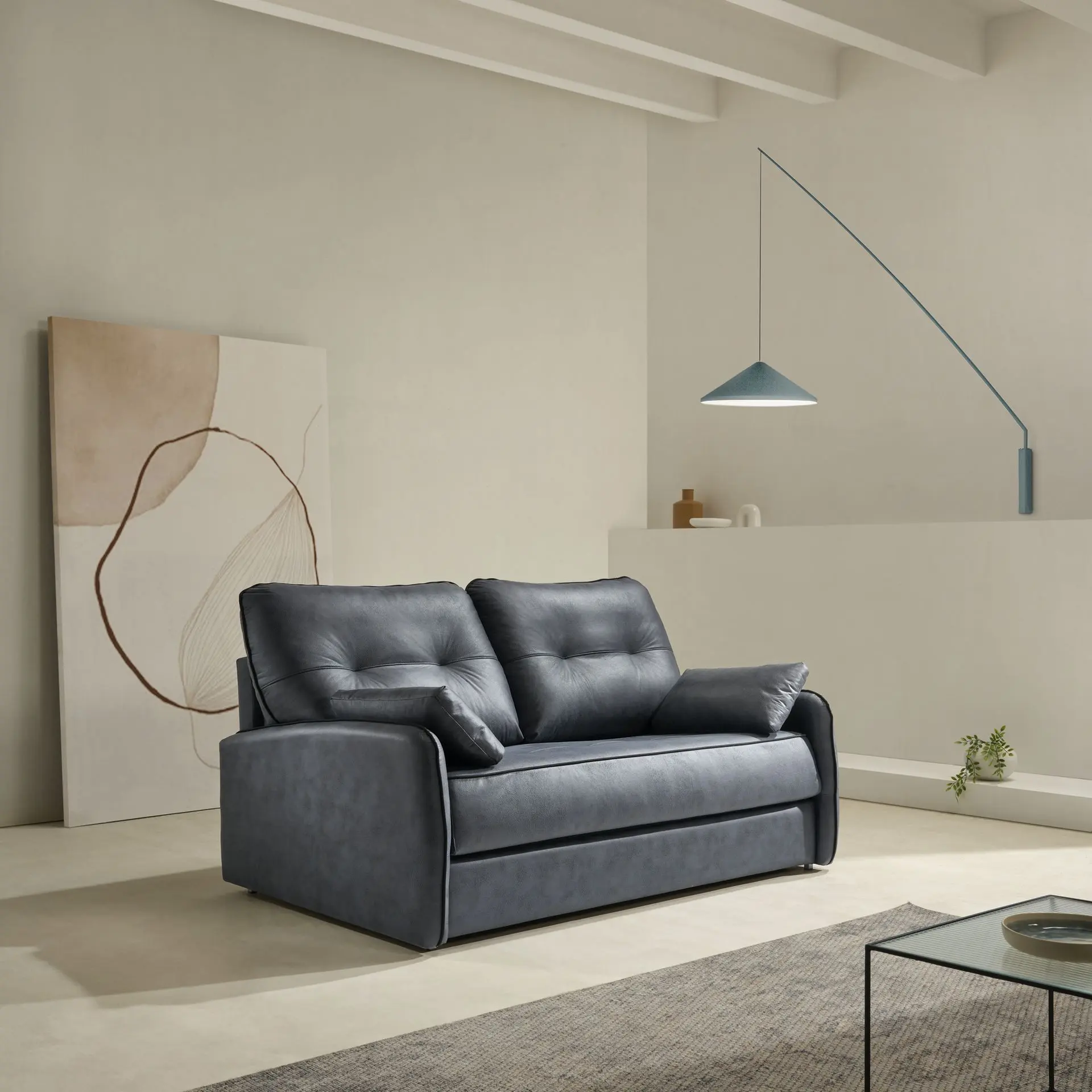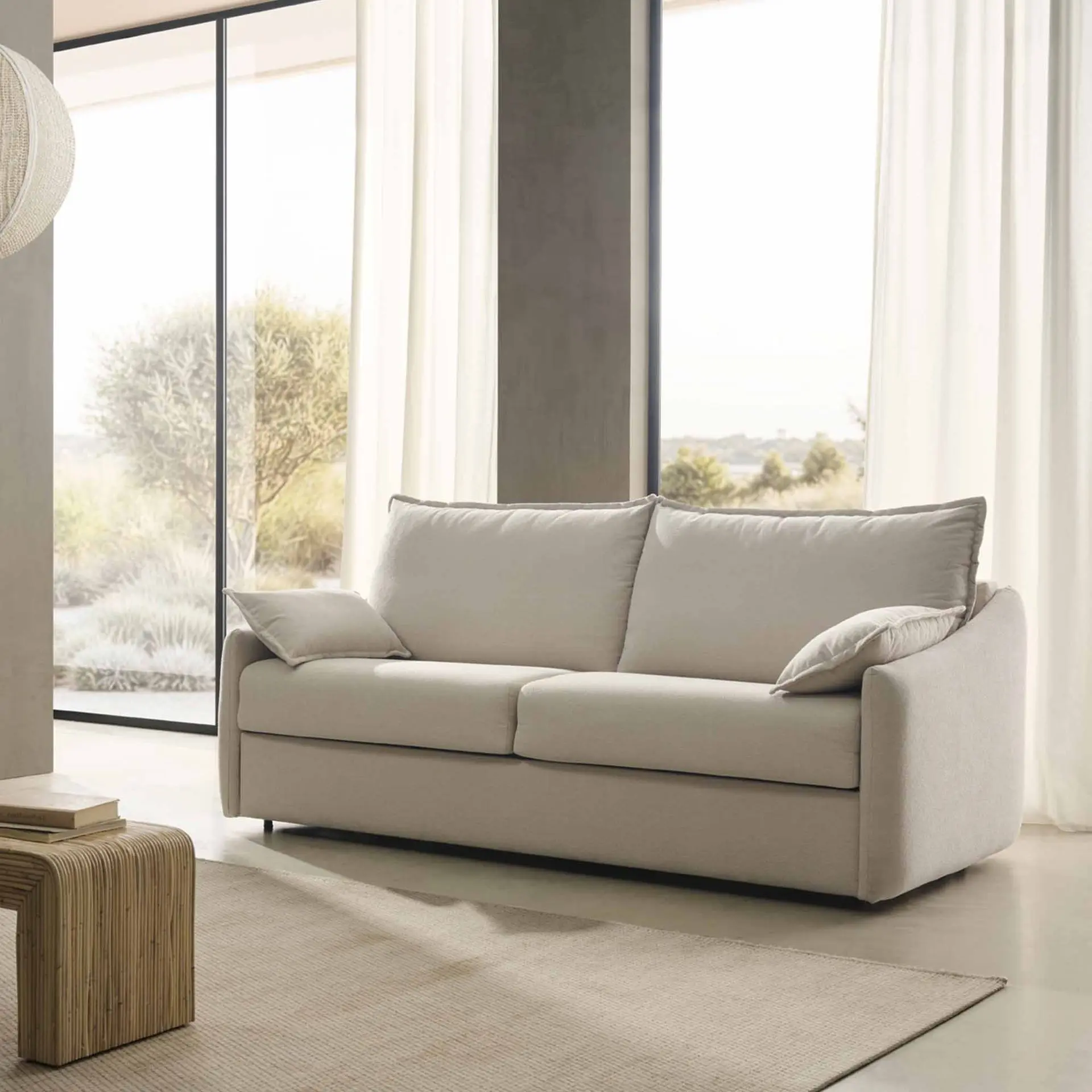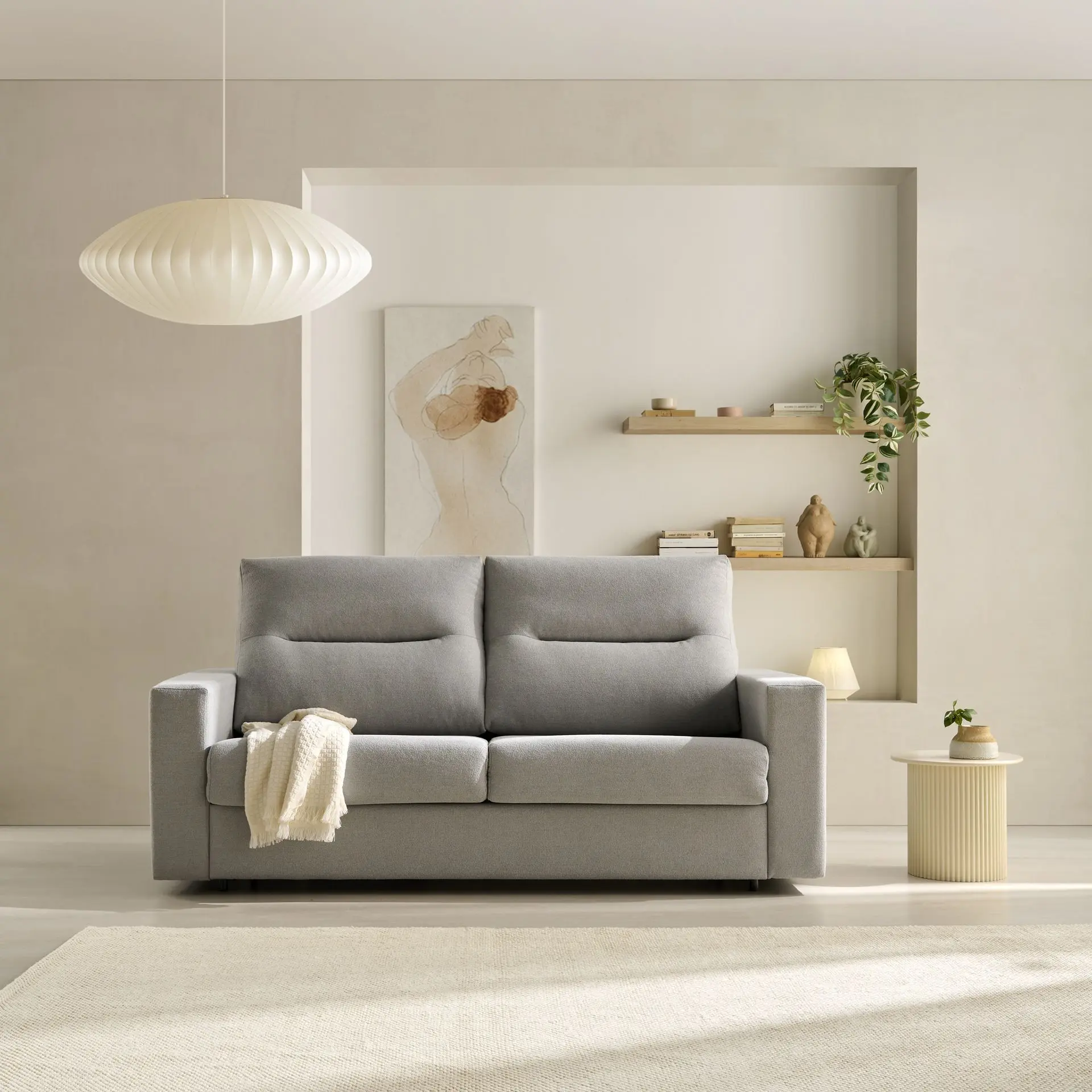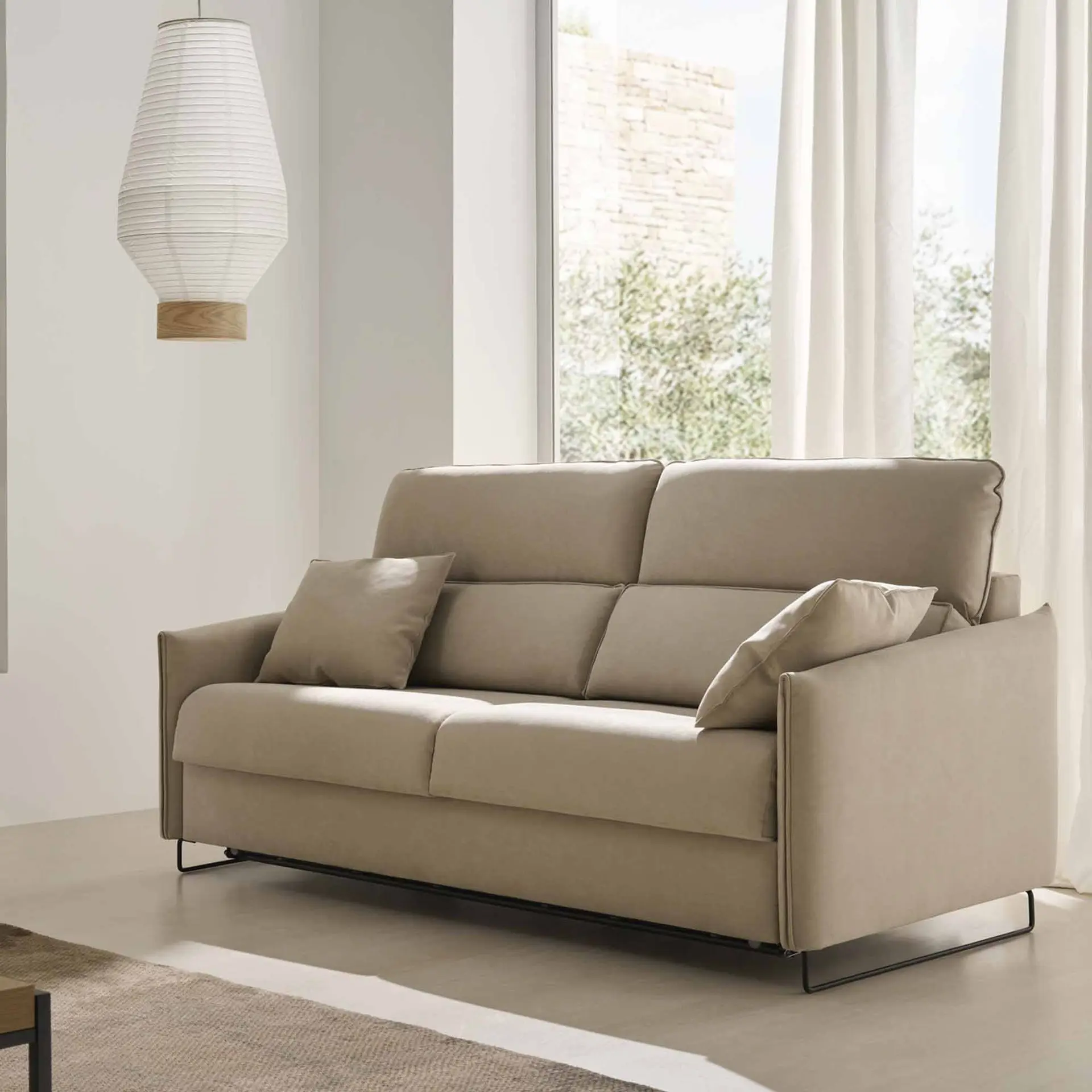 Con un diseño elegante y líneas suaves, el sofá cama aporta serenidad a cualquier espacio.
