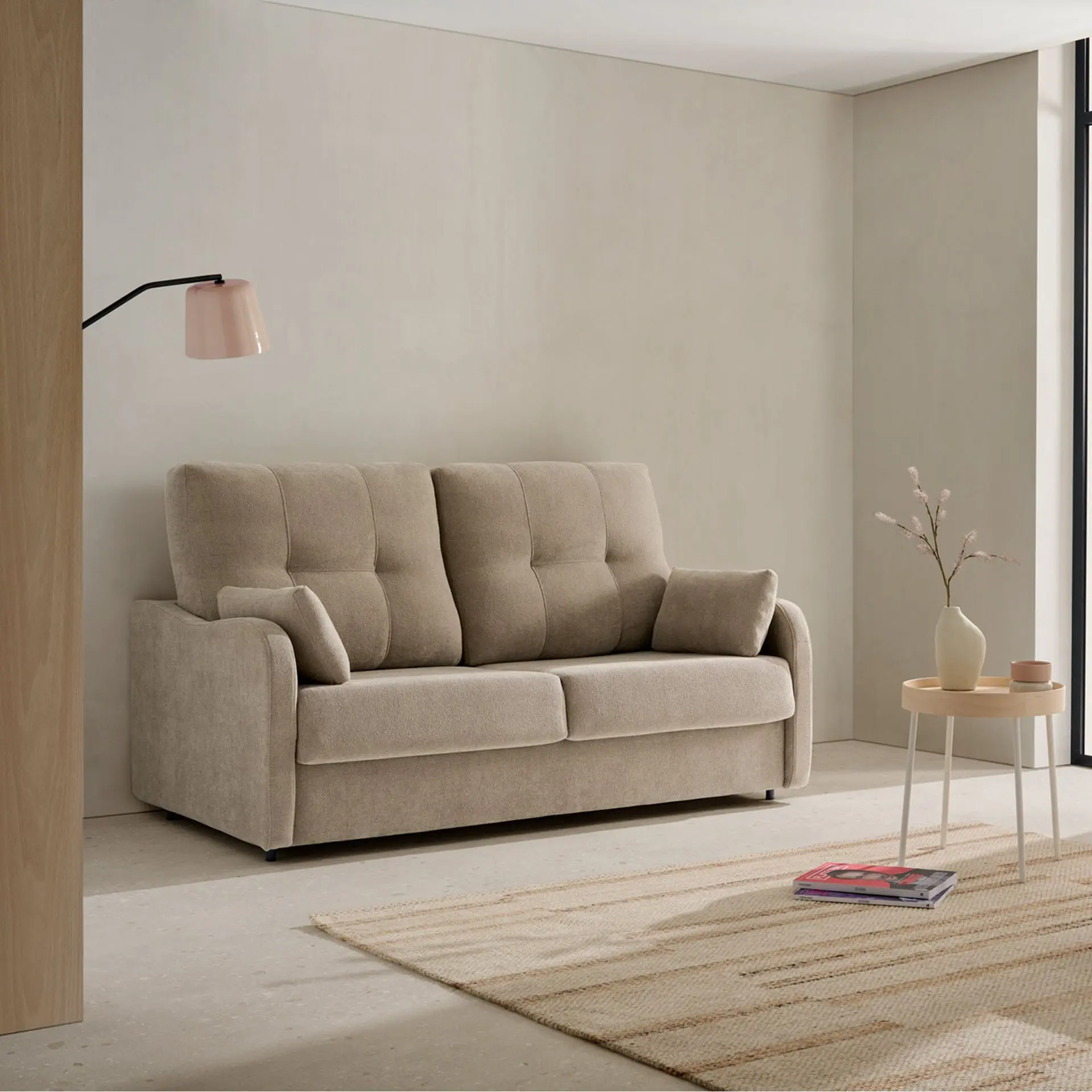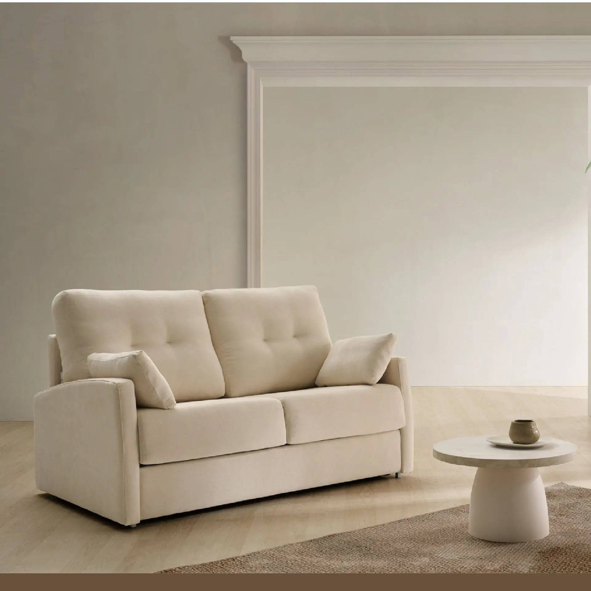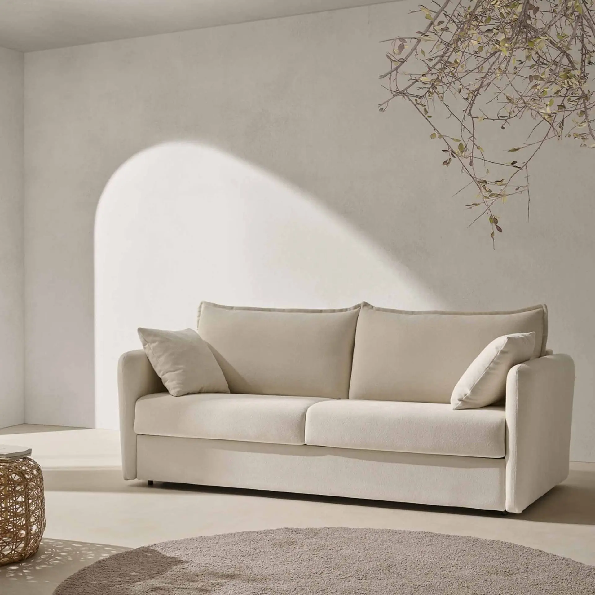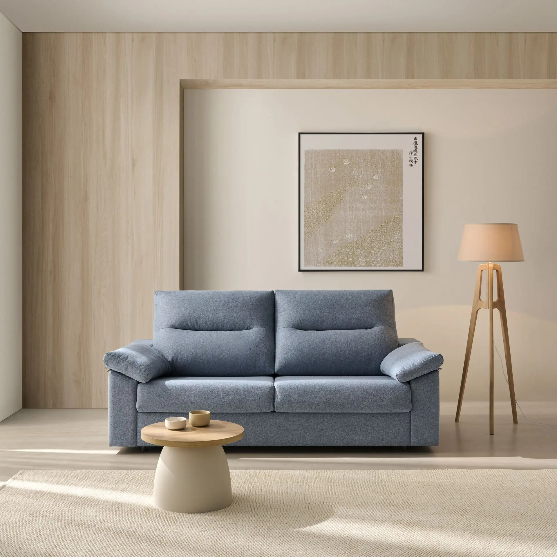 Con un diseño elegante y líneas suaves, el sofá cama aporta serenidad a cualquier espacio.