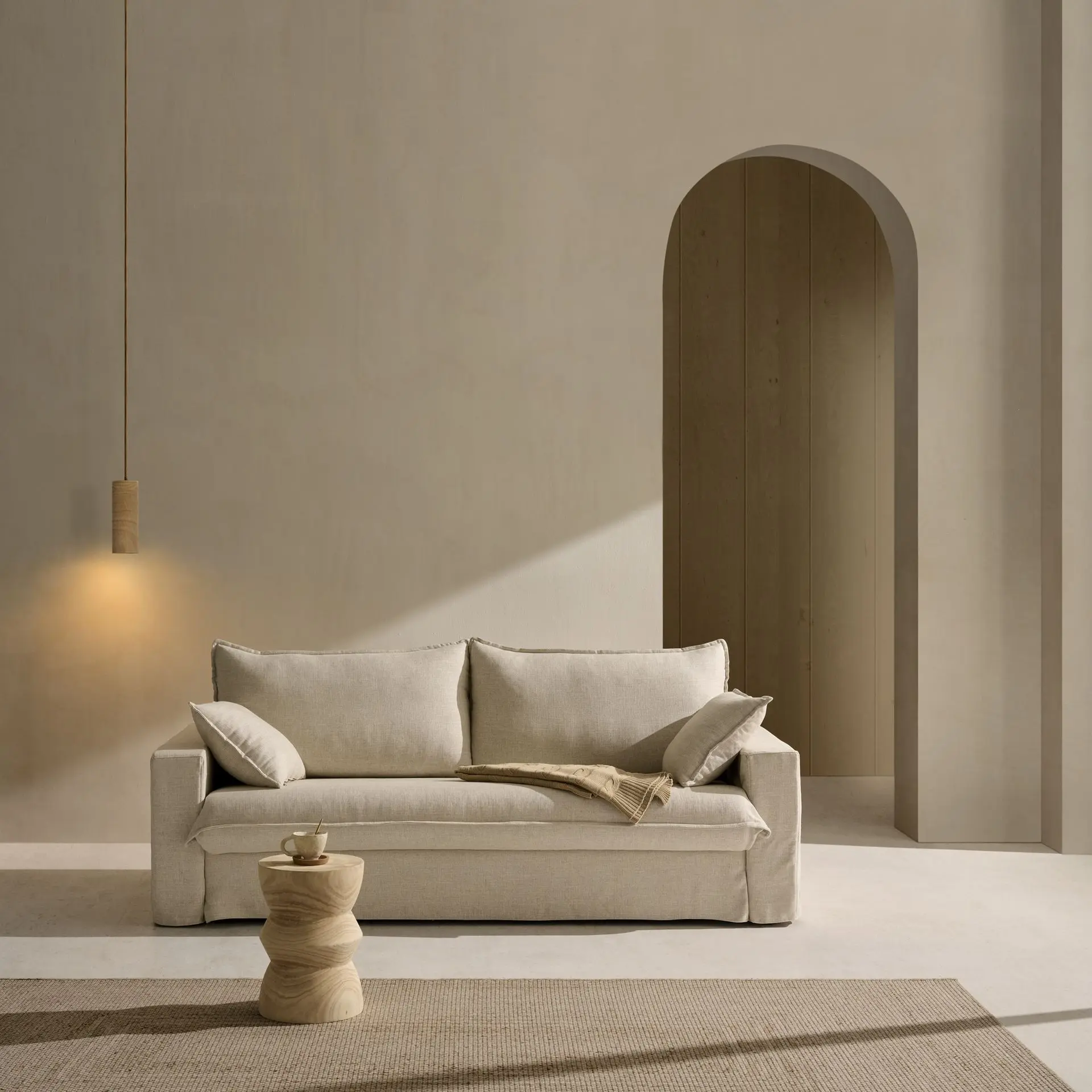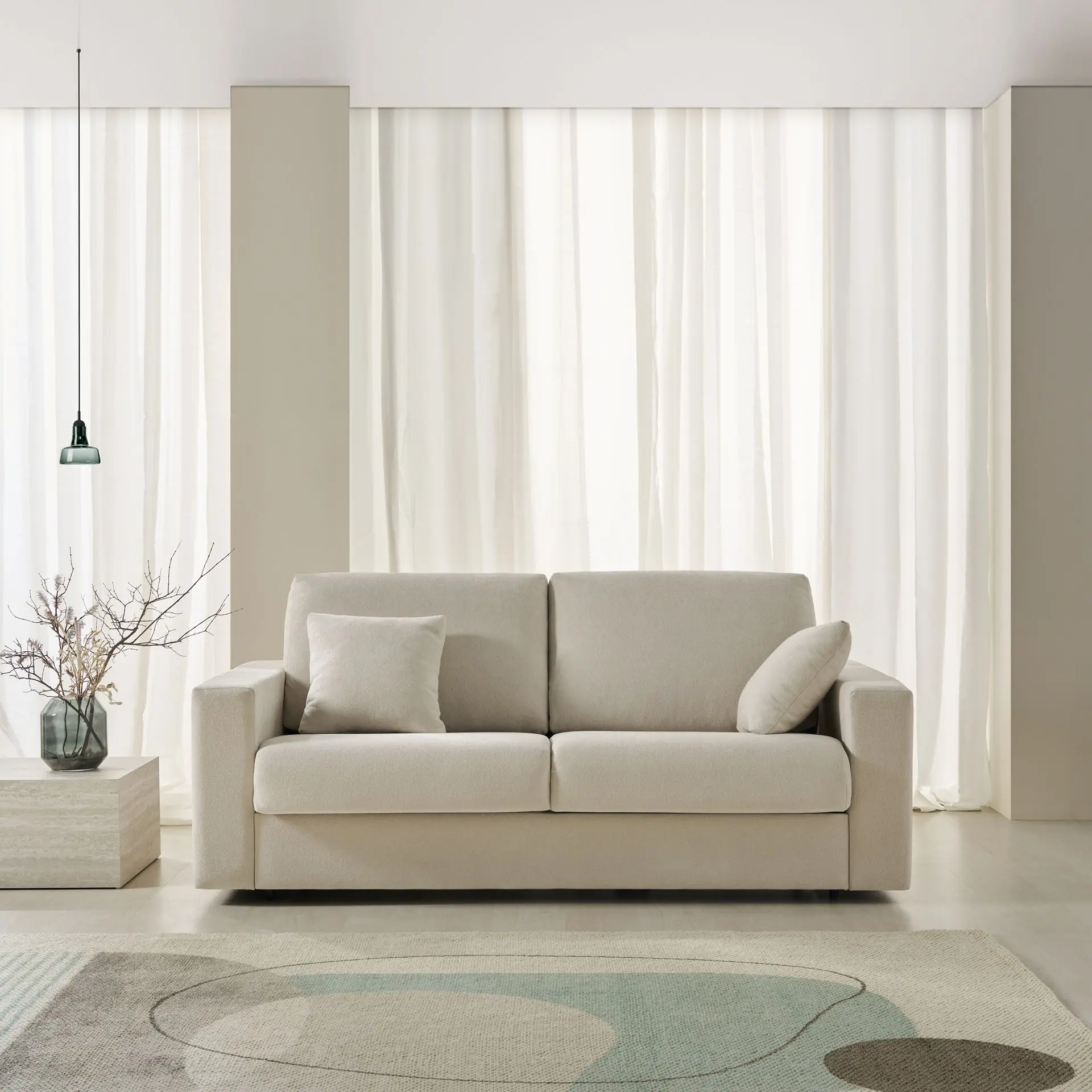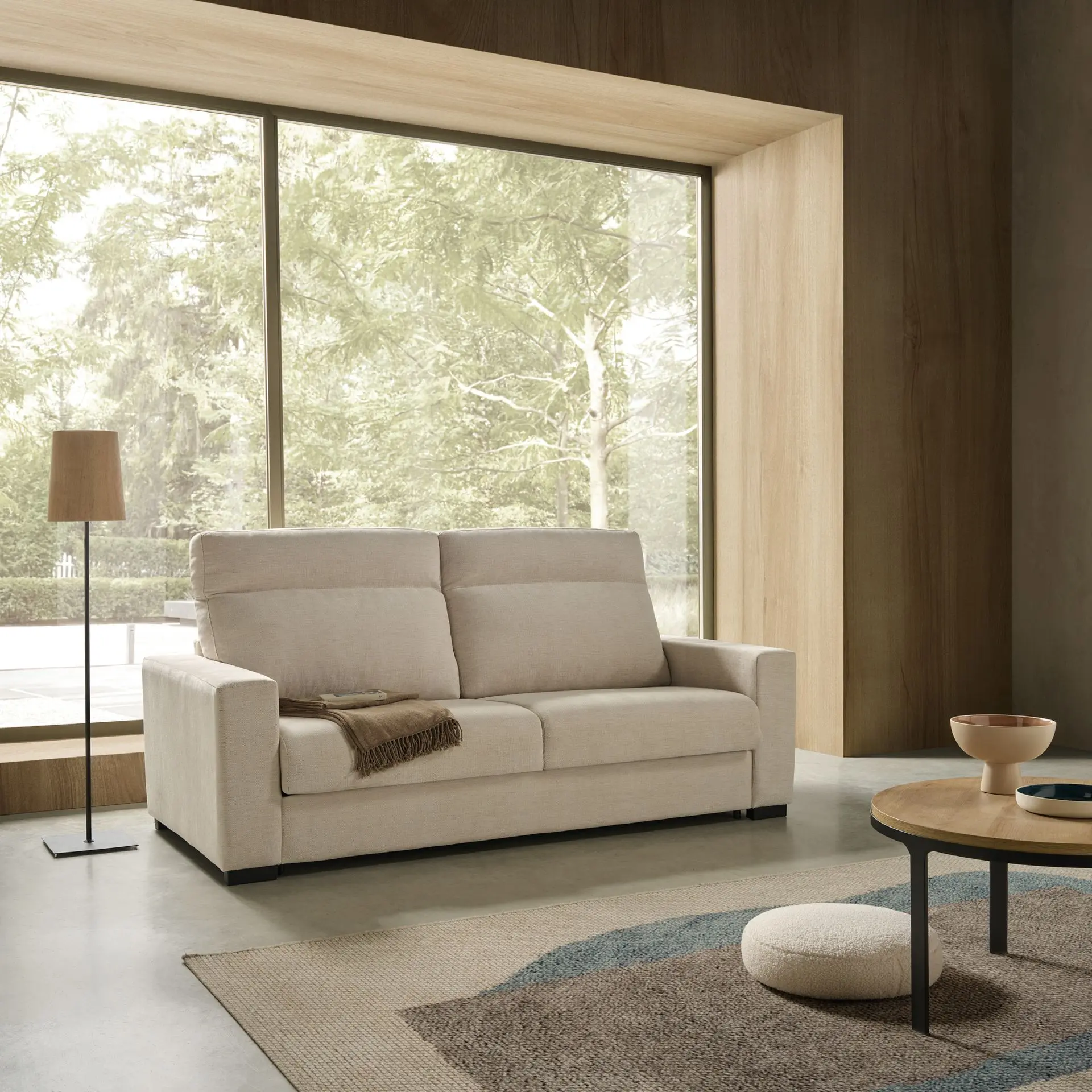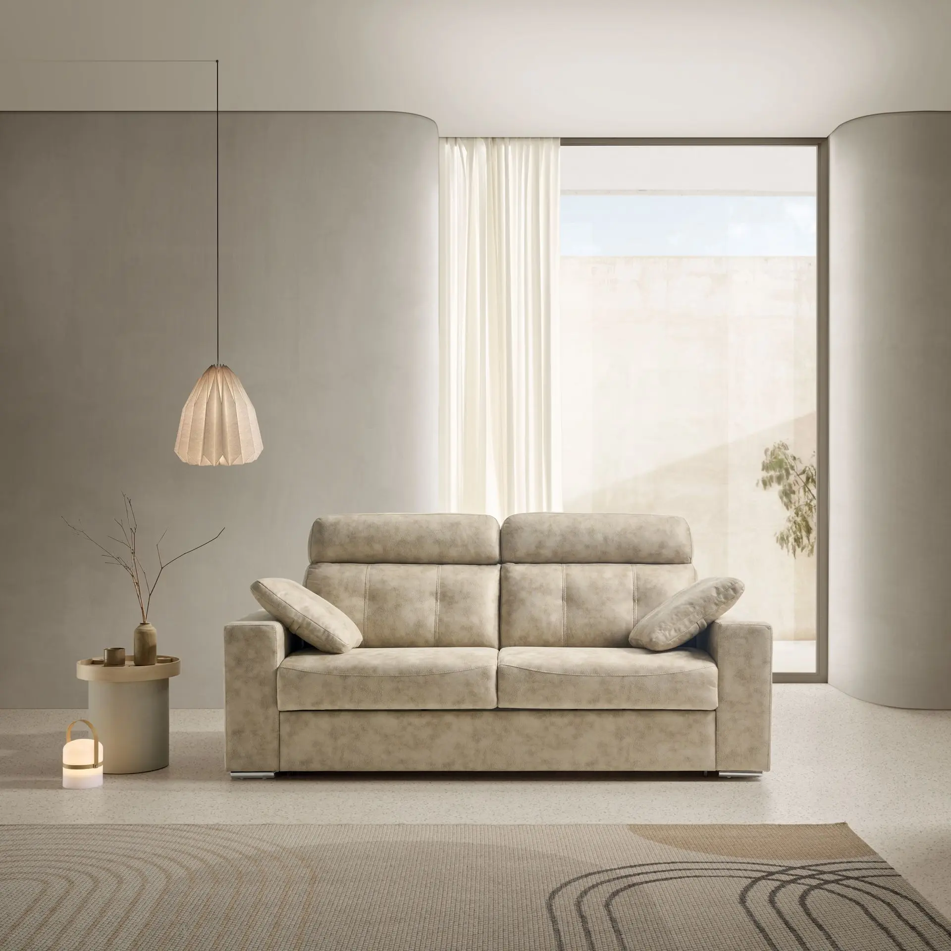 Con un diseño elegante y líneas suaves, el sofá cama aporta serenidad a cualquier espacio.