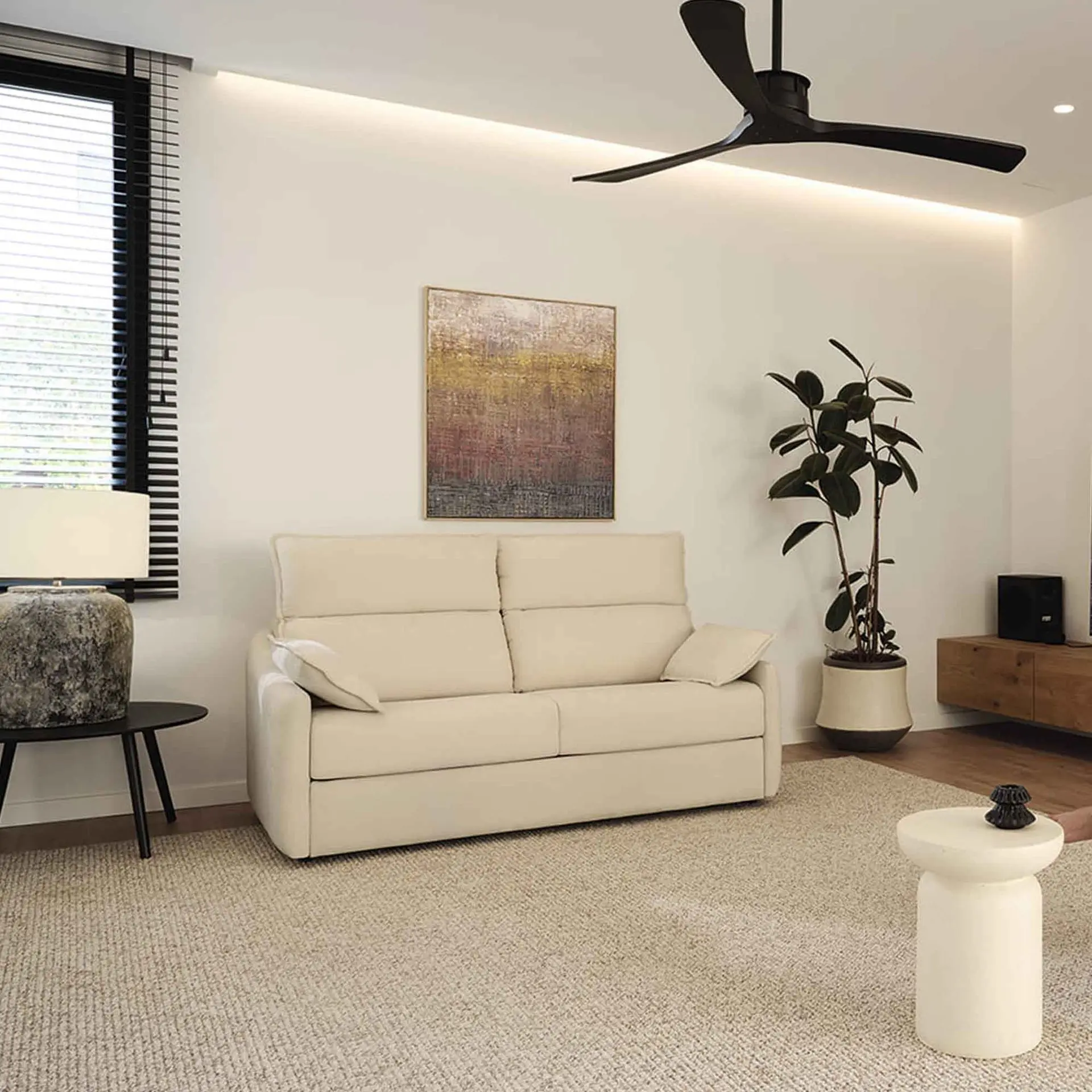 Con una estética refinada, el sofá cama es sinónimo de comodidad. Su presencia serena enriquece.
